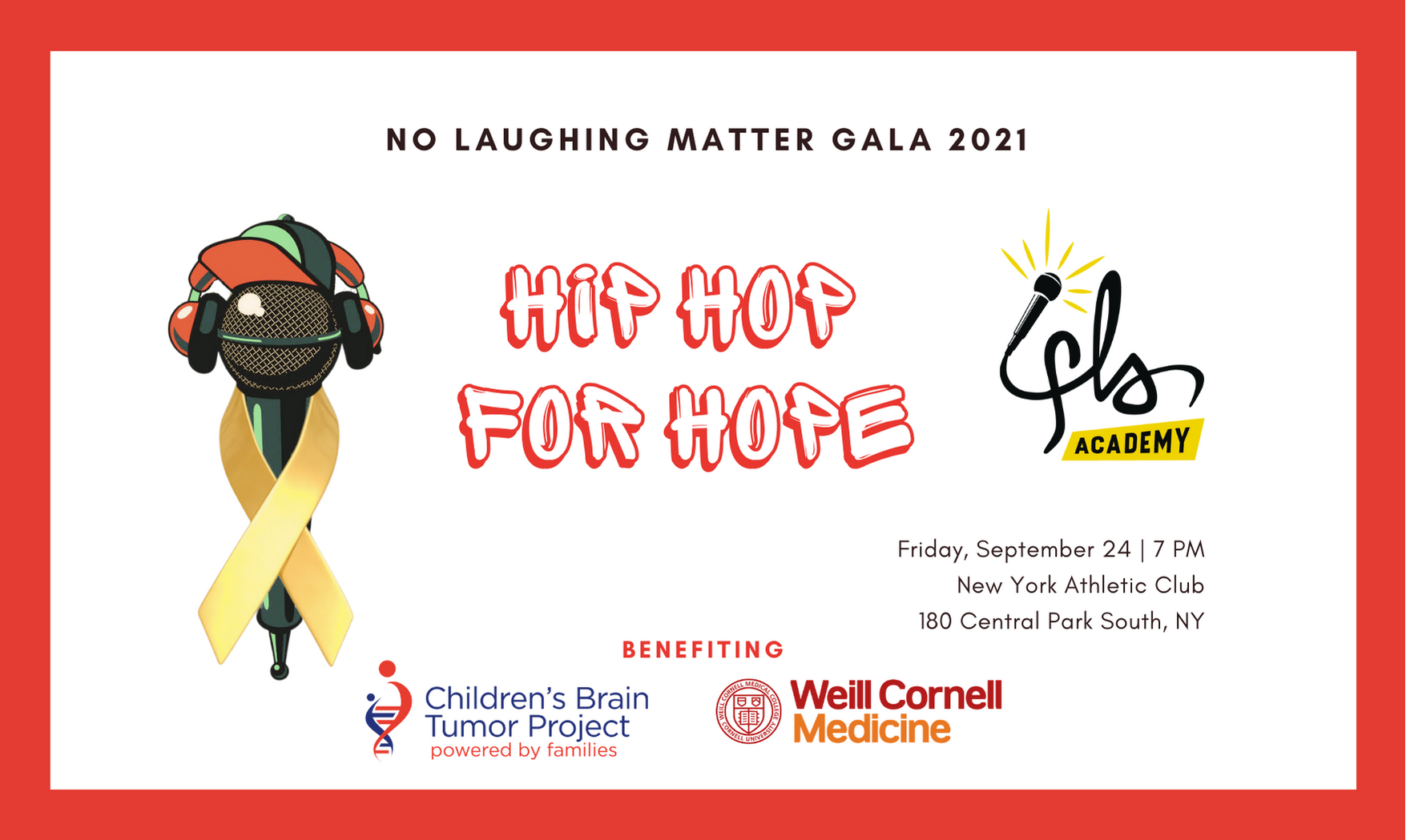 July 1, 2021 - The Children's Brain Tumor Project is excited to announce that our annual comedy night fundraiser will resume in 2021. Save the Date for "Hip Hop for Hope" on Sept. 24.