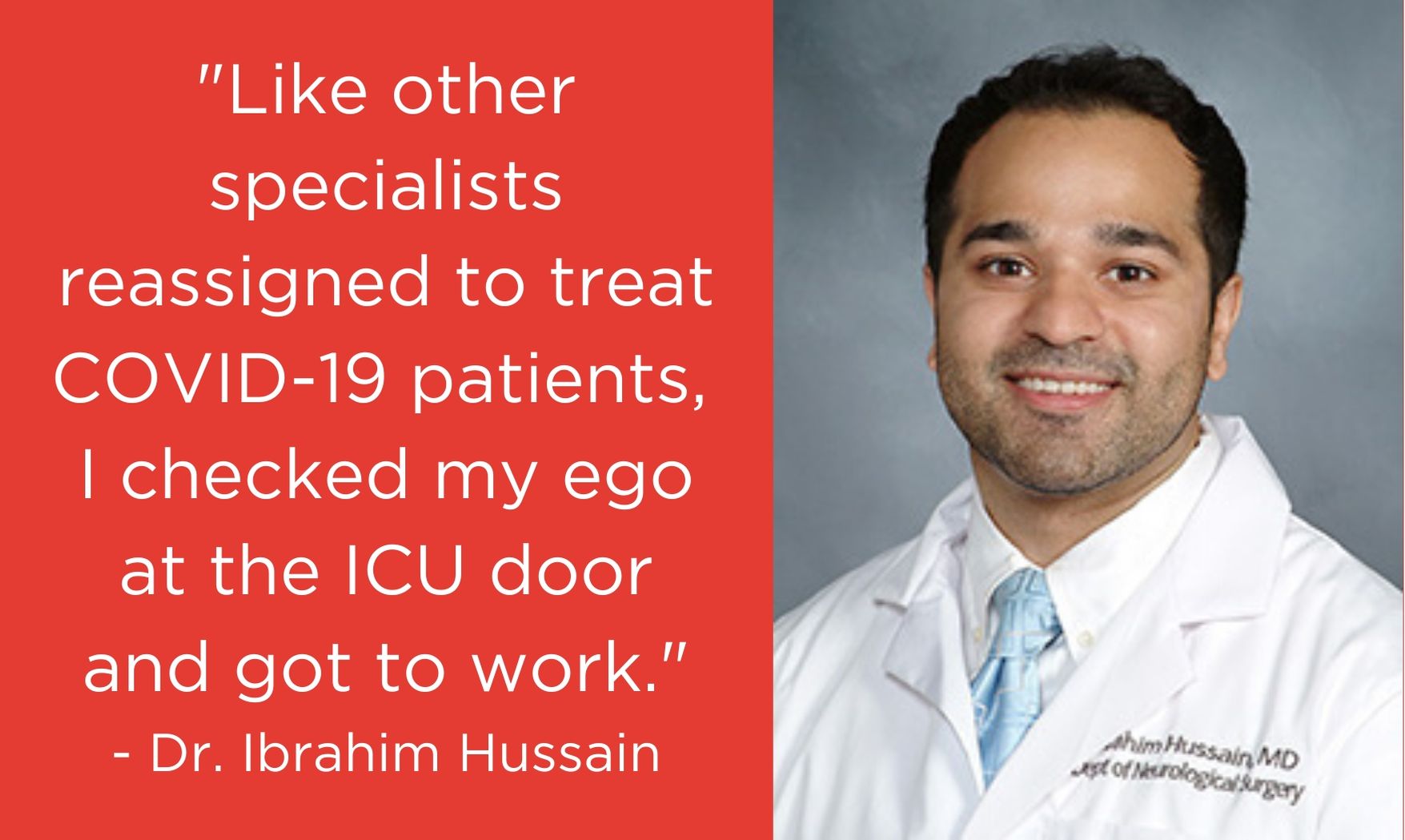 April 16, 2020 - Neurosurgeon Dr. Ibrahim Hussain, was redeployed to the ICU to treat COVID-19 patients. Read his blog post.